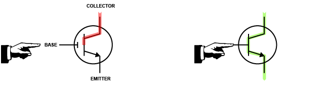 You can imagine the transistor like a switch. When the switch is pressed, the current flows. If the switch is released, the current no longer flows. The transistor has three connections: Base, Emitter and Collector. The voltage at the base-emitter switches the collector-emitter path. The circuit of a transistor depends on its type. There are two main types of transistors: NPN and PNP transistors. The current direction (collector-emitter) must be observed, otherwise, the transistor could be damaged. We will use NPN transistor most of the time.