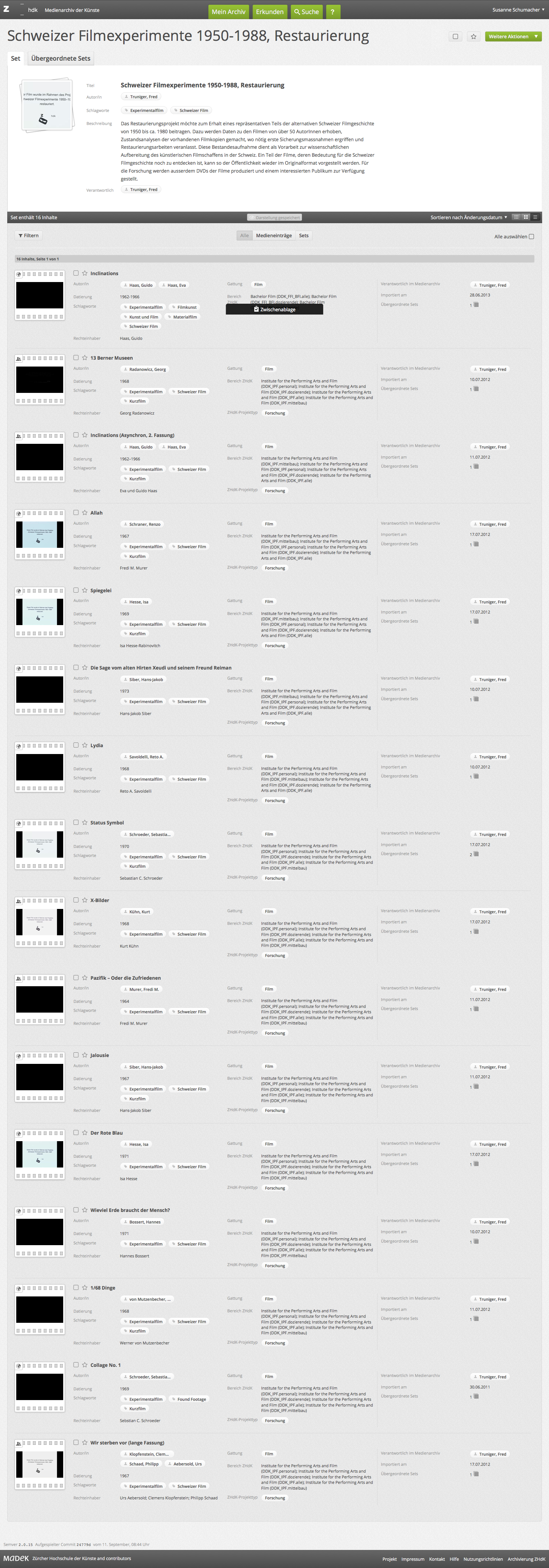 Die Vertiefung Scientific Visualization arbeitet ihr Dia-Archiv auf und überführt es ins Medienarchiv. Eine strikte Sammlung mit Sets, welche jeweils eine Diplomarbeit beiinhalten.