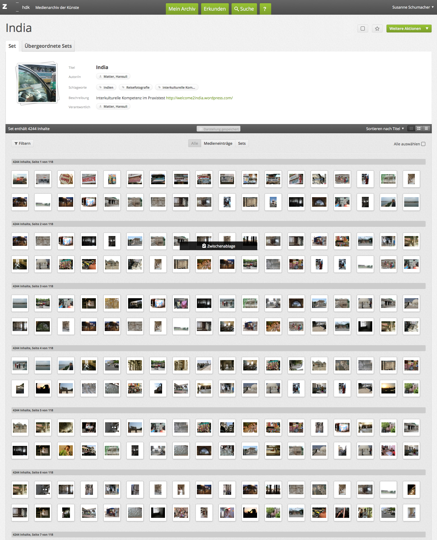 Ergebnis eines interkulturellen Austausches des Departement Designs mit Hochschulen in Indien ist unter anderem eine ausserordentlich umfangreiche fotografische Dokumentation. Für 4500 Fotos ist die Miniatur-Ansicht gerade hilfreich.