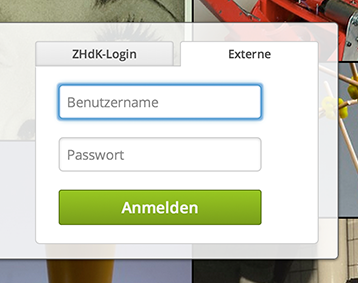 Extern Nutzer/innen des Medienarchivs wählen auf der Willkommenseite den Reiter „Externe“ und melden sich dort mit dem erhaltenen Login und Passwort ein. Externe Konten werden in der Regeln nach einer vereinbarten Zeit wieder gelöscht. Mit dem externen Login können Sie alle Funktionen des Medienarchivs nutzen, sind aber nicht für die Inhalte der ZHdK freigeschaltet.